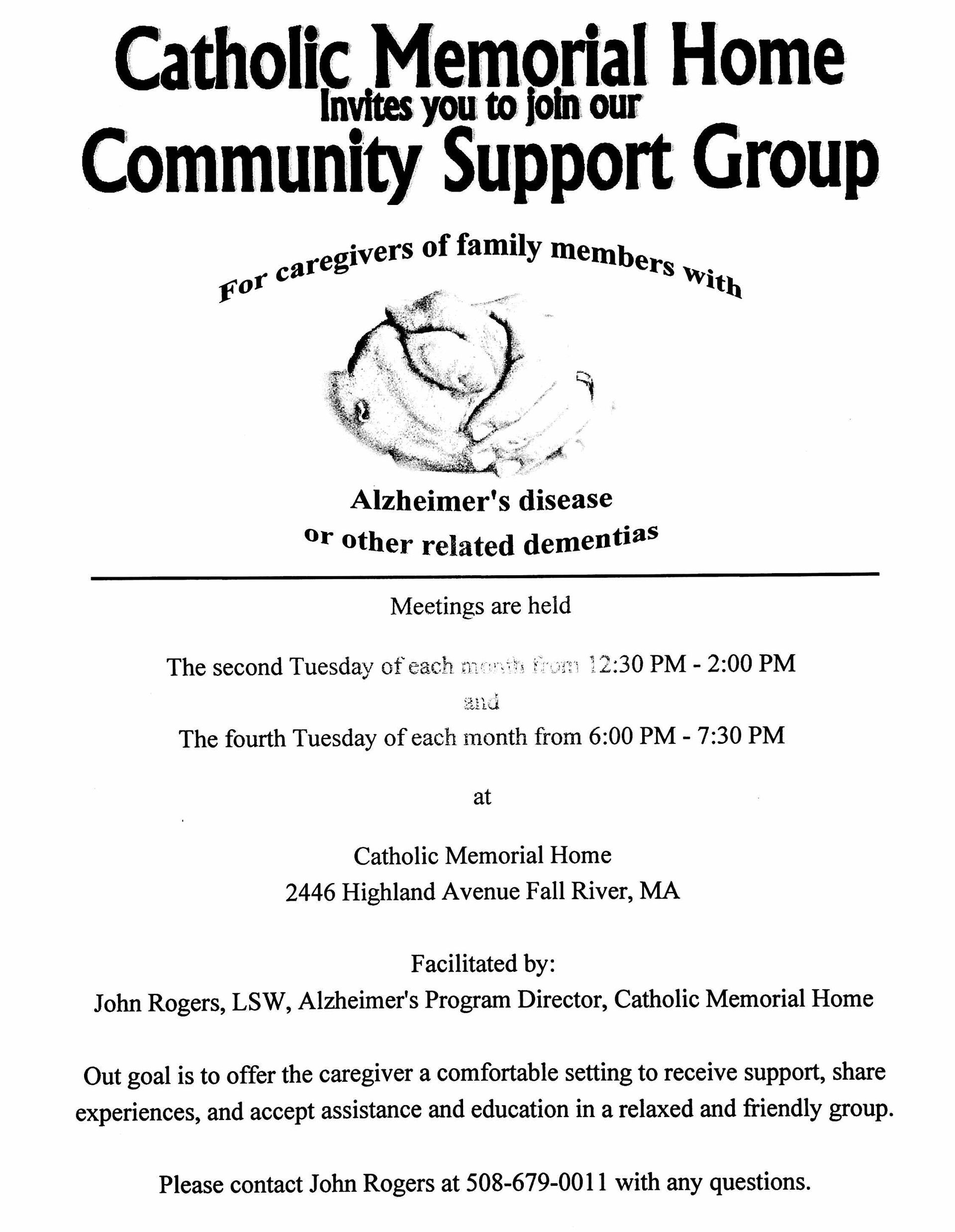 Catholic Memorial Home's Community Support Groups - for caregivers of family members with Alzheimer's disease and other related dementias (click on image to enlarge)