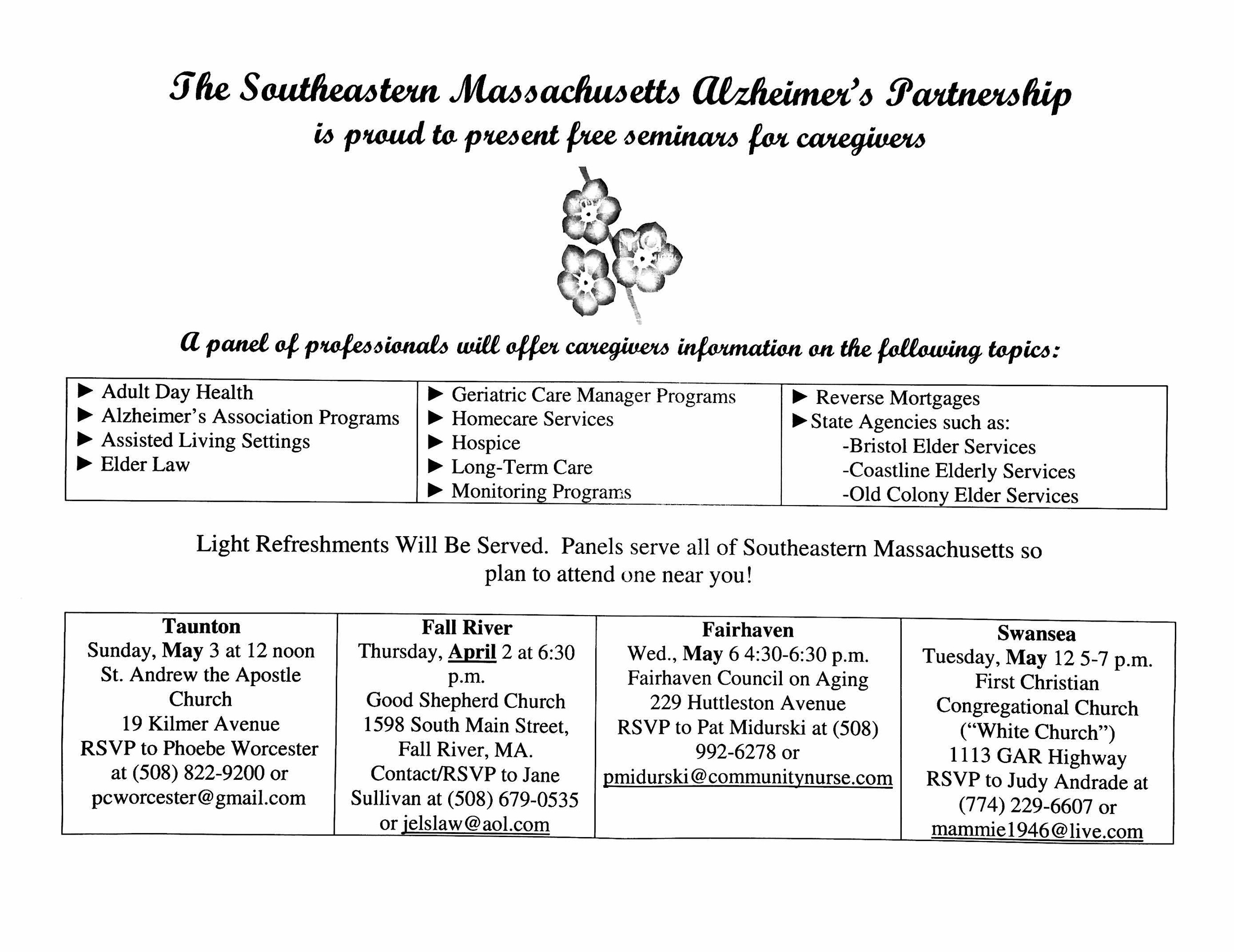 The Southeastern Massachusetts Alzheimer's Partnership - free seminars for caregivers (click on image to enlarge)